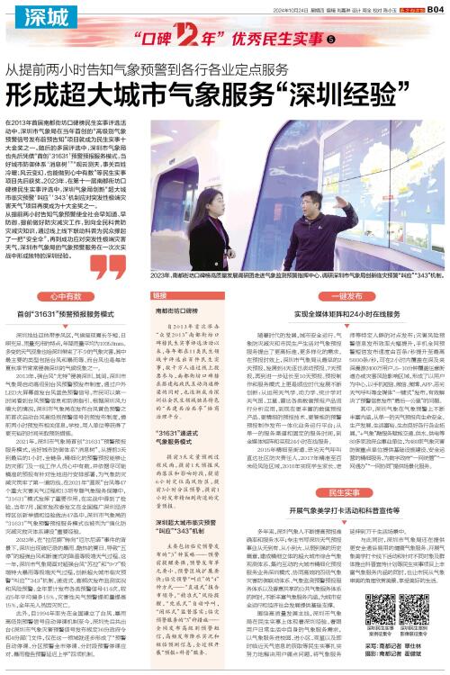 在2013年首届南都街坊口碑榜民生实事评选活动中,深圳市气象局在当年首创的“高级别气象预警信号发布前预告知”项目就成为民生实事十大金奖之一。随后的多届评选中,深圳市气象局也先后凭借“首创‘3163