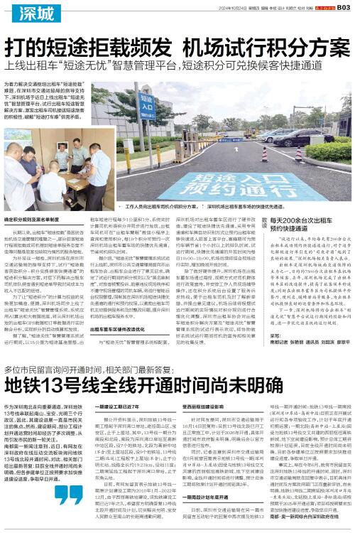 为着力解决交通枢纽出租车“短途拒载”难题,在深圳市交通运输局的指导支持下,深圳机场于近日上线出租车“短途无忧”智慧管理平台,试行出租车短途智慧解决方案,激发出租车司机接送短途旅客的积极性,破解“短
