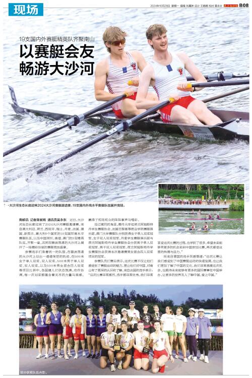 南都讯 记者陈紫嫣 通讯员吴永东 近日,大沙河生态长廊迎来了2024大沙河赛艇邀请赛。来自澳大利亚、荷兰、西班牙、瑞士、丹麦、法国、德国、新西兰、意大利9个国家的10支国际高水平赛艇队伍,以及中国