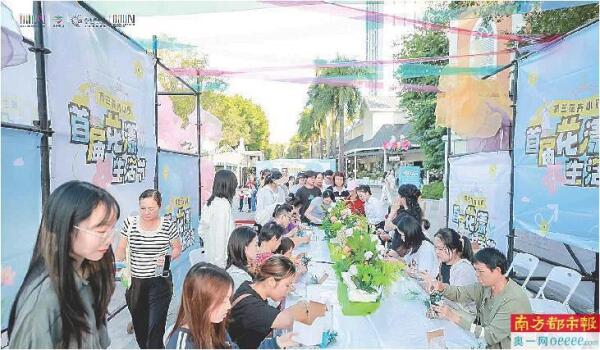 活动现场还设置花艺手工体验区,营造美好生活场景,人气爆棚。市民游客兴致勃勃地体验DIY浮游瓶、扭扭棒鲜花、无火香薰等项目,在花香中漫步,在集市上徜徉,寻找最美的拍照角度,感受生活的美好。