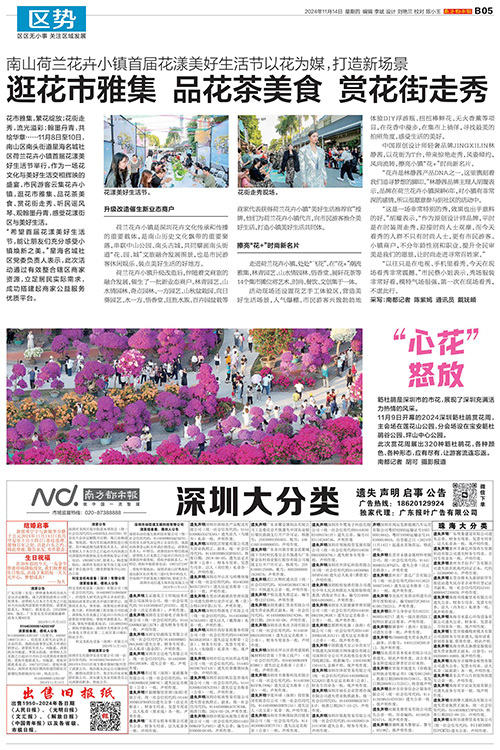 花市雅集,繁花绽放;花街走秀,流光溢彩;翰墨丹青,共绘华章……11月8日至10日,南山区南头街道星海名城社区荷兰花卉小镇首届花漾美好生活节举行,作为一场花文化与美好生活交相辉映的盛宴,市民游客云集花卉小镇,逛花市雅集、品花茶美食、赏花街走秀、听民谣风琴、观翰墨丹青,感受花漾街区与美好生活。