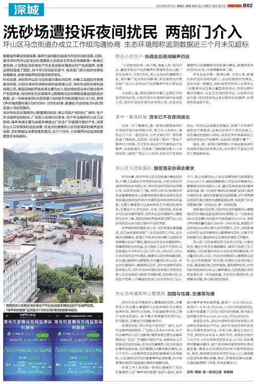 随着城市建设快速发展,噪声污染问题日益成为市民关注的话题。日前,家住深圳市坪山区龙光玖誉雅筑小区的业主苏先生向南都奥一新闻记者反映,小区附近洗砂场生产作业及运输车辆进出时产生的噪声,给周边居民造成