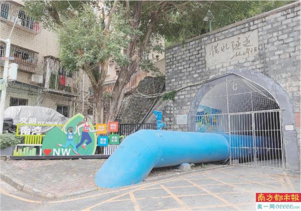 11月初,奥一新闻记者实地走访发现,樟树布供水隧道位于南湾街道樟树布新塘东小区内。现场供水隧道的门外未见任何施工围挡,通道内无工人施工,但隧道的大门被铁链锁住,行人仍无法入内。