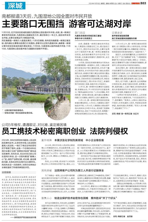 11月10日,位于宝安区航城街道的九围湿地公园全面对外开放。此前,奥一新闻记者收到市民反映,九围湿地公园建设完工后,通过验收已一年之久,园区却并未完全开放。此事引发周边不少居民的不满。 而在南都