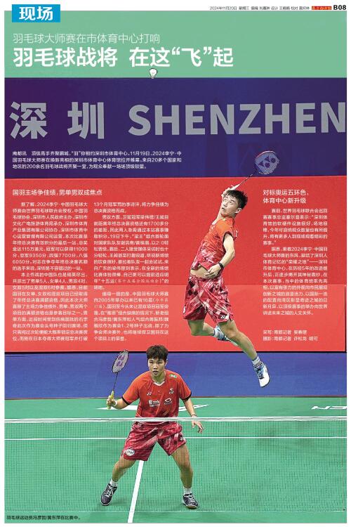 南都讯 顶级高手齐聚鹏城,“羽”你相约深圳市体育中心。11月19日,2024李宁·中国羽毛球大师赛在焕新亮相的深圳市体育中心体育馆拉开帷幕。来自20多个国家和地区的200余名羽毛球战将齐聚一堂,为