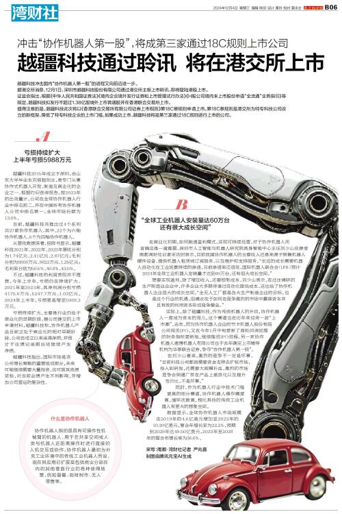 越疆科技冲击国内“协作机器人第一股”的进程又向前迈进一步。 据港交所消息,12月1日,深圳市越疆科技股份有限公司通过港交所主板上市聆讯,即将登陆港股上市。 证监会指出,根据《中华人民共和国证券