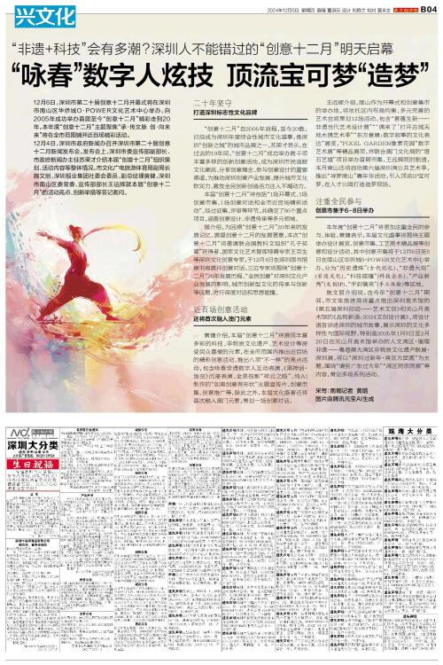 12月6日,深圳市第二十届创意十二月开幕式将在深圳市南山区华侨城O·POWER文化艺术中心举办。自2005年成功举办首届至今“创意十二月”精彩走到20年。本年度“创意十二月”主题聚焦“承·传文脉