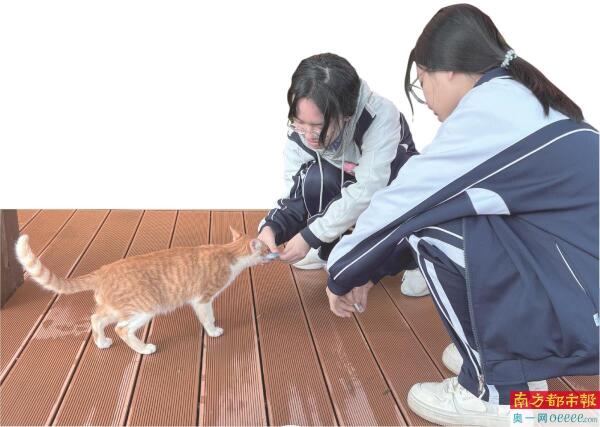 课间或放学的时候,同学们纷纷主动去给小猫们投喂各种零食。校方供图