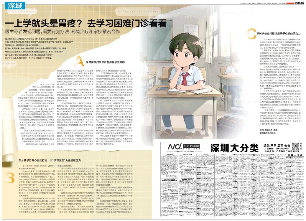 一上学就头晕胃疼? 去学习困难门诊看看