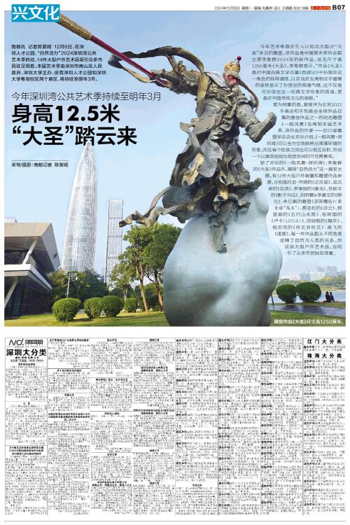 南都讯 记者陈紫嫣 12月6日,在深圳人才公园,“自然活力”2024深圳湾公共艺术季启动,14件大型户外艺术品吸引众多市民驻足观看。本届艺术季由深圳市南山区人民政府、深圳大学主办,设有深圳人才公园