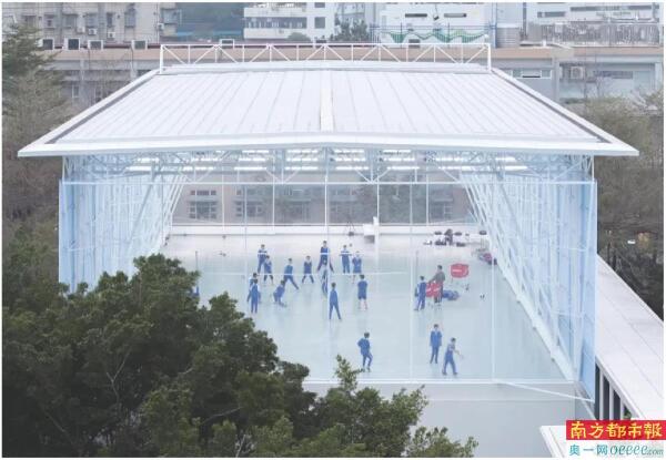 深圳百校焕新之南海小学项目,屋顶的多功能顶棚。