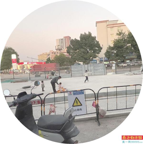 南都记者在该施工区域看到令人揪心一幕,被便道隔成的两个空间,一边成为建筑材料的堆积场,另一边则变成周边孩子的“游乐场”,几个孩子在此追逐玩闹,井盖与砖石散落一地。在现场,记者目睹了几位周边居民熟练地推开挂有“当心洞坑”“当心触电”以及“观澜大道改造工程—区间共线段(施工)”等标识的围挡,径直走进施工区域打起了羽毛球,将安全置之度外。有居民透露,此处的施工是“做一点,停一会,附近居民也没把这里当做工地”。