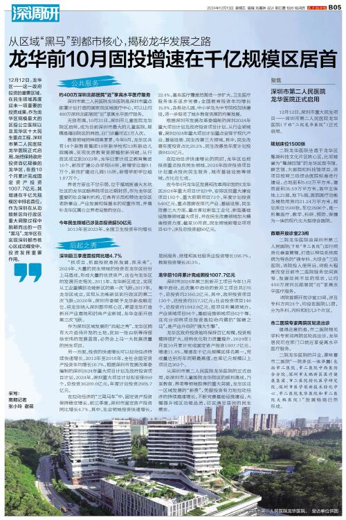 龙华前10月固投增速在千亿规模区居首