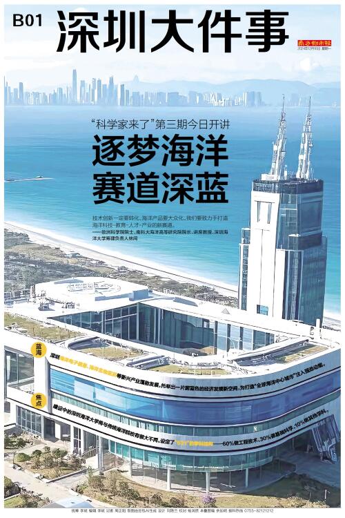 技术创新一定要转化,海洋产品要大众化。我们要致力于打造海洋科技-教育-人才-产业的新赛道。 ——欧洲科学院院士,南科大海洋高等研究院院长、讲席教授,深圳海洋大学筹建负责人林间 蓝海 深圳海洋