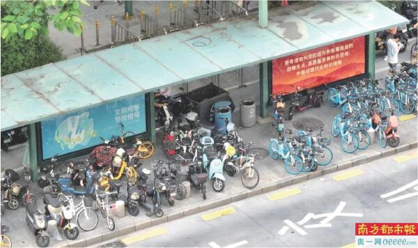 黄贝岭公交车站附近非机动车乱停放,造成安全隐患。 罗湖区检察院供图