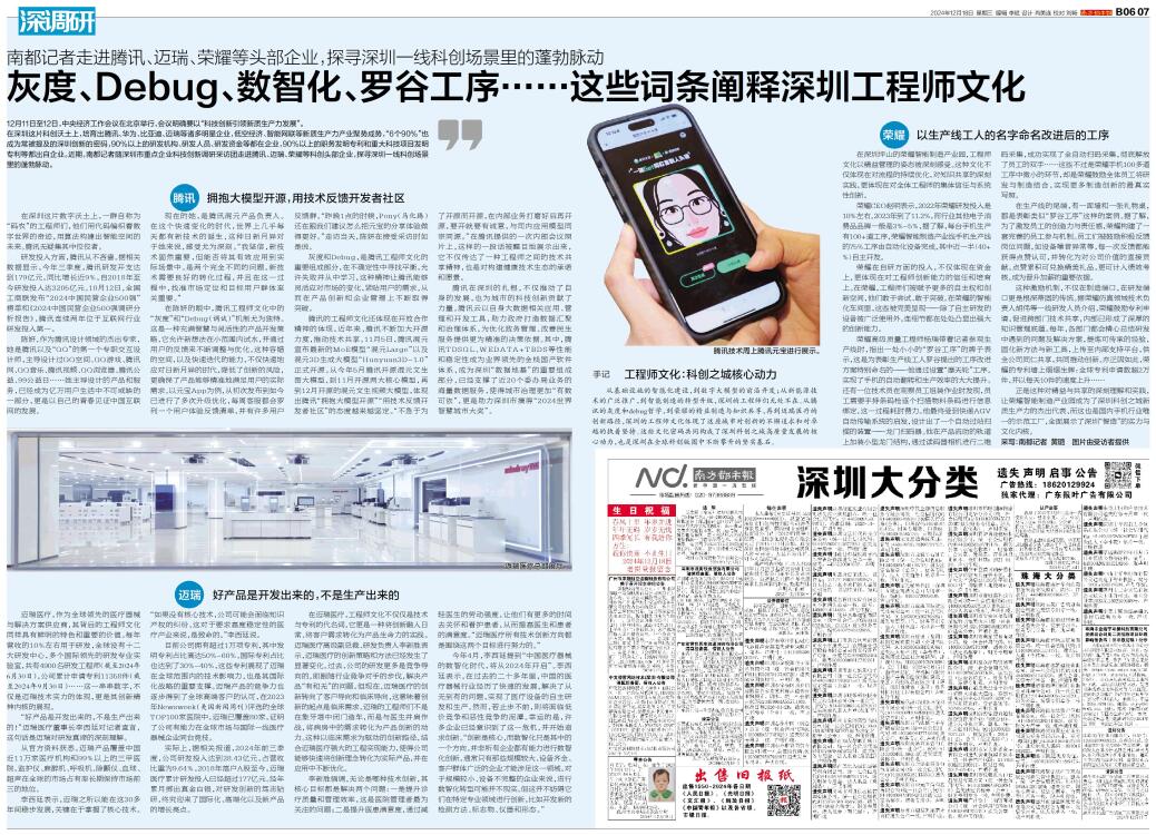 12月11日至12日,中央经济工作会议在北京举行,会议明确要以“科技创新引领新质生产力发展”。 在深圳这片科创沃土上,培育出腾讯、华为、比亚迪、迈瑞等诸多明星企业,低空经济、智能网联等新质生产力