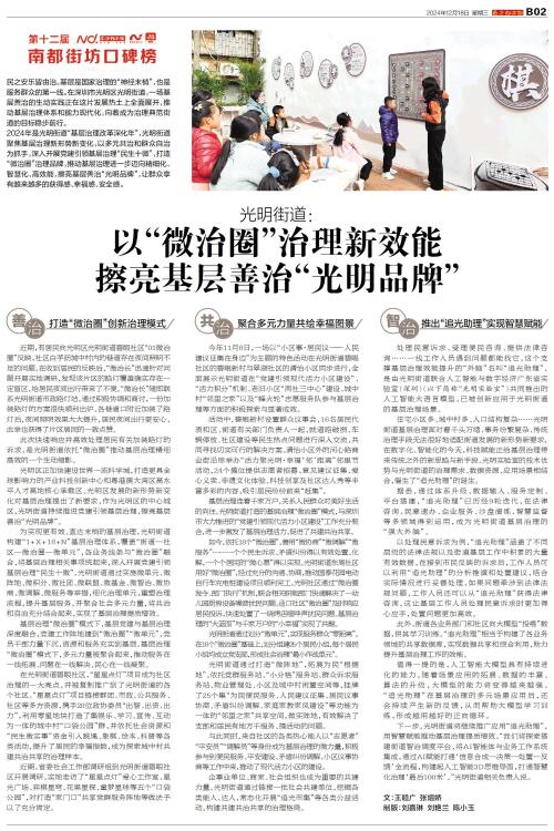 民之安乐皆由治。基层是国家治理的“神经末梢”,也是服务群众的第一线。在深圳市光明区光明街道,一场基层善治的生动实践正在这片发展热土上全面展开,推动基层治理体系和能力现代化,向着成为治理典范街道的目