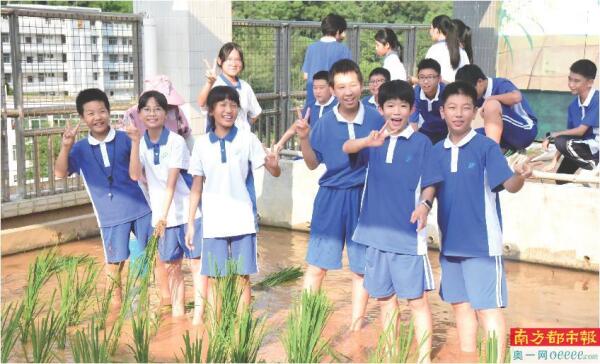 校内科普劳动基地开展水稻种植课程。