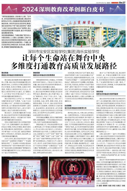 “教育是强国建设、民族复兴之基。”近年来,深圳坚持教育优先发展战略,推进深圳教育先行示范。伴随着教育高质量发展号角的吹响,深圳市宝安区实验学校(集团)海乐实验学校(下称“海乐实验学校”)秉承“让每