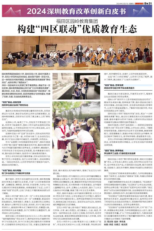 园岭教育集团由园岭小学、园岭实验小学、园岭外国语小学、百花小学四所成员校组成,皆坐落于园岭-百花片区。这一独特的空间相邻基因,促使集团教育资源能够“跨校流动”,成员校得以“抱团成长”。 深圳一流