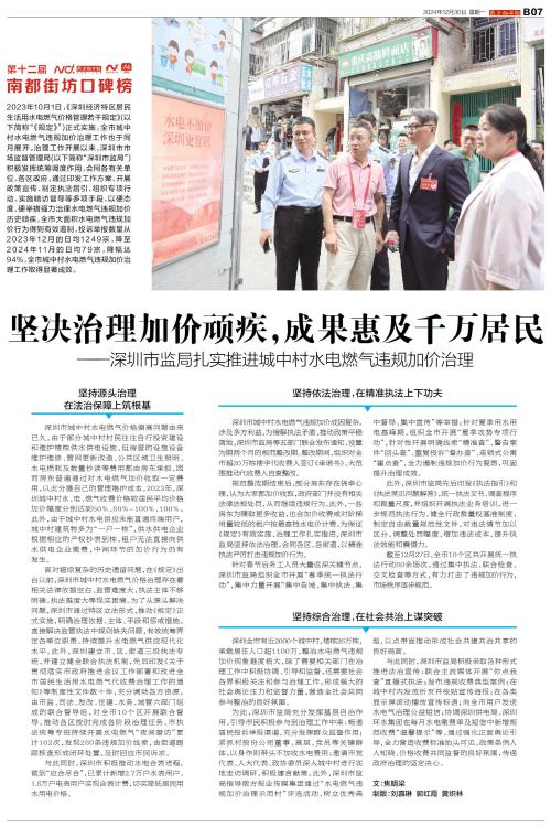 2023年10月1日,《深圳经济特区居民生活用水电燃气价格管理若干规定》(以下简称“《规定》”)正式实施,全市城中村水电燃气违规加价治理工作也于同月展开。治理工作开展以来,深圳市市场监督管理局(以