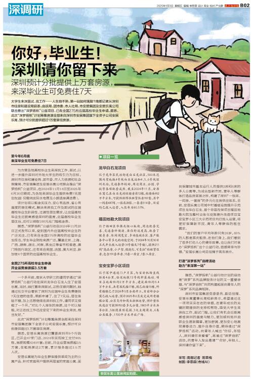 大学生来深面试、找工作……人生地不熟,第一站如何落脚?南都记者从深圳市住房和建设局获悉,由该局、团市委、市人社局、市安居集团及安居乐寓公司联合推出“深梦扬帆”公益项目,已有全国275所应届高校毕业