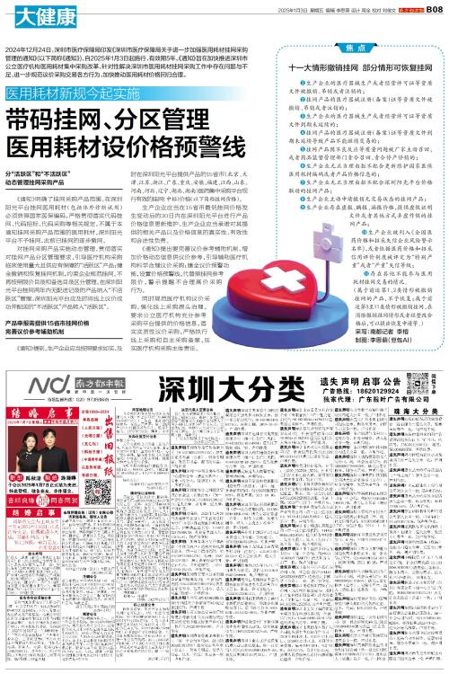 2024年12月24日,深圳市医疗保障局印发《深圳市医疗保障局关于进一步加强医用耗材挂网采购管理的通知》(以下简称《通知》),自2025年1月3日起施行,有效期5年。《通知》旨在加快推进深圳