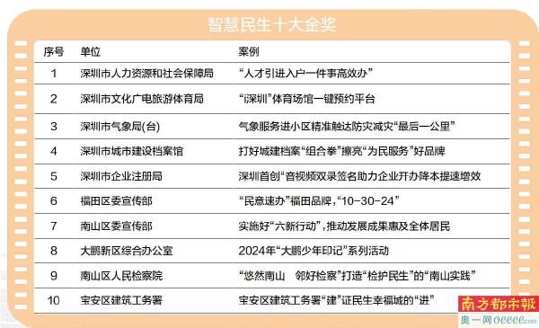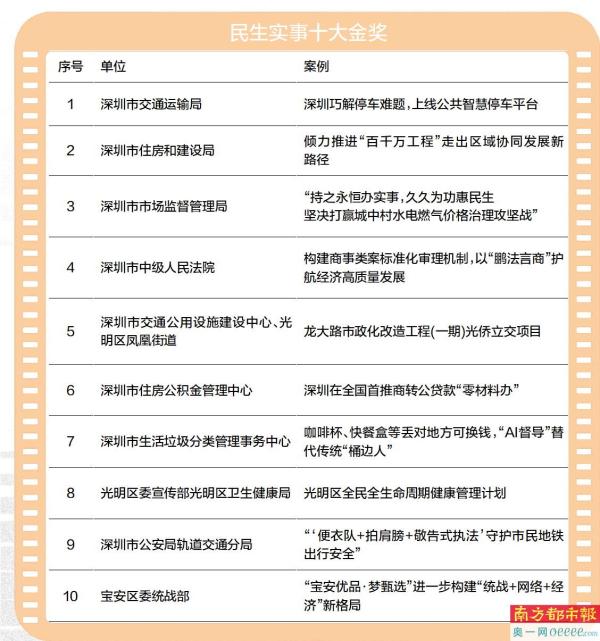 2024年10月,第十二届南都街坊口碑榜启动民生实事案例征集。两个月的时间,通过政府部门、企业、市民自荐或者推荐,第十二届南都街坊口碑榜一共征集了200多件深圳的民生实事,覆盖市职能局、区级政府、区职能局、街道办、社区、企业等。
