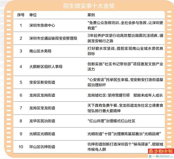 经过公开征集、网络投票、专家评审环节,1月10日,主题为“众望而行 众‘智’成城”的第十二届南都街坊口碑榜优秀民生实事奖项揭晓,诞生了民生实事十大金奖、民生微实事十大金奖、智慧民生十大金奖、治理创新十大金奖、民生实事/微实事优秀案例、国企口碑奖等多个重要奖项。