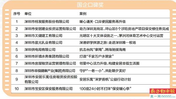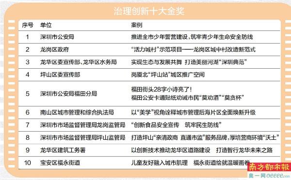 再如,2019年,深圳建成各类公园1090个,深圳也随之拥有了一个霸气新名字——“千园之城”。当年,深圳市城市管理和综合执法局“提前一年建成‘千园之城’”荣获第七届南都街坊口碑榜民生实事金奖。