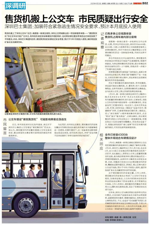 售货机搬上了深圳公交车?近日,南都奥一新闻注意到,深圳公交领域推出的一项创新服务举措——“便民售货机”在社交平台引起广泛关注,有市民在肯定该设备便民作用的同时,也对其安装位置及带来的出行体验发表了