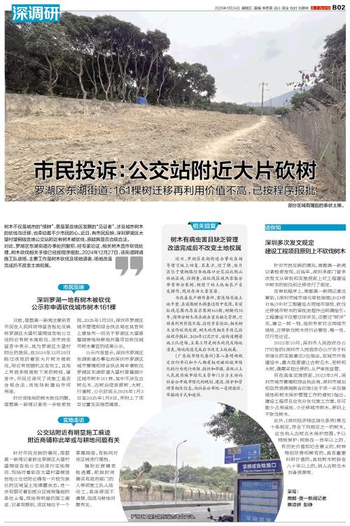 树木不仅是城市的“绿肺”,更是某些地区发展的“见证者”,涉及城市树木的砍伐与迁移,也牵动着不少市民的心。近日,有市民反映,深圳罗湖区大望村望桐信告地公交站附近有树木被砍伐,质疑其是否合规合法。
