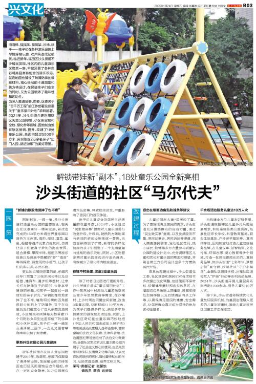 滑滑梯、摇摇乐、攀爬架、沙池、秋千……孩子们在各种游乐设施上尽情穿梭玩耍,欢声笑语此起彼伏。临近新年,福田区沙头街道不少居民发现,社区内的儿童游乐区焕然一新,不仅添置了各种色彩明亮且富有创意的游乐