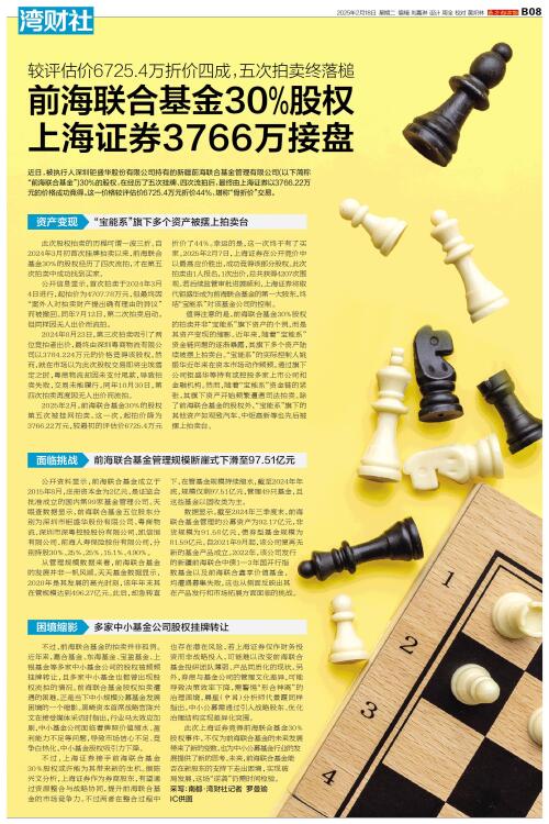 前海联合基金30%股权 上海证券3766万接盘
