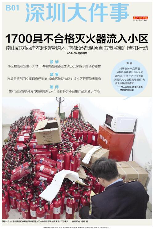 投 诉 小区物管在业主不知情下动用共管资金超过20万元采购该批消防器材 监 管 市场监管部门立案调查经销商;南山区消防大队对该小区开展隐患排查 追 问 生产企业曾被列为“失信被执