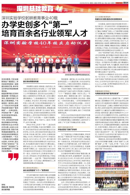 在深圳教育,乃至全国教育的广袤版图上,深圳实验学校犹如一座熠熠生辉的灯塔,曾书写过许多灿烂而经典的教育传奇。 她是改革开放以后深圳建设的第一所市属公办学校,是深圳市首个市属公办教育集团,广东省首