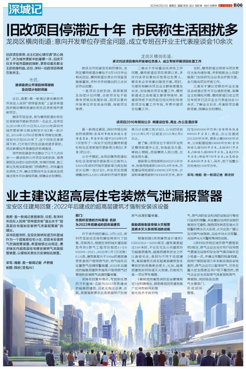 南都·奥一新闻记者留意到,日前,有深圳市民在人民网“领导留言板”提出关于“超高层住宅强制安装燃气泄漏报警器”的建议。 该市民留言称,宝安区新桥街道万科星城作为一个超高层