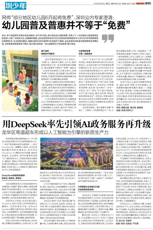 政务智能回复准确率超89%,中小微企业获取政策红利平均周期缩短至7天,“一条龙”服务解决城市治理顽疾……面对DeepSeek这一颠覆性AI革命,龙华区凭借前瞻布局和快速响应,率先完成DeepSeek-R1模型本地化部署,推动政务服务、企业服务、城市治理等多领域“AI”智能政务办公,引领政务服务向高效化、精准化、智能化不断升级。龙华区通过加速开放场景应用,开辟发展新领域与新赛道,加快形成以人工智能为引擎的新质生产力,实现弯道超车。