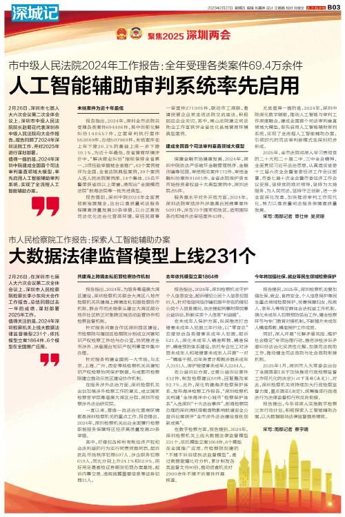 2月26日,在深圳市七届人大六次会议第二次全体会议上,深圳市人民检察院检察长李小东向大会作工作报告。总结回顾过去一年的成绩,谋划部署2025年工作。 值得关注的是,2024年深圳检察机关上线大数