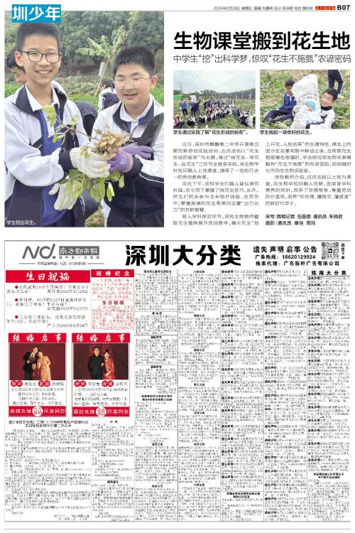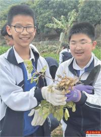 近日,深圳市麒麟第二中学开展第五期农耕劳动实践活动。此次活动以“花生形成的秘密”为主题,通过“拔花生-观花生-品花生”三环节全链条实践,将生物学科知识融入土地课堂,演绎了一场知行合一的劳动教育课。