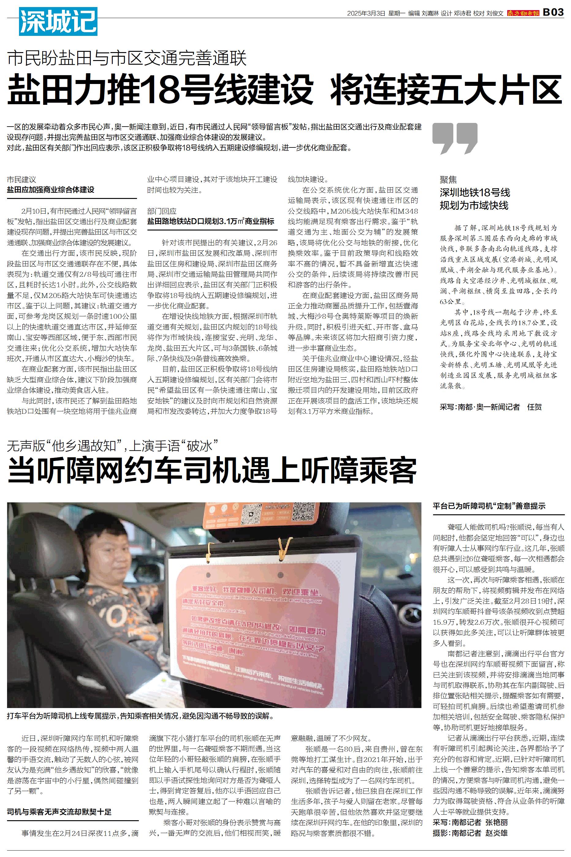 这一次,再次与听障乘客相遇,张顺在朋友的帮助下,将视频剪辑并发布在网络上,引发广泛关注。截至2月28日19时,深圳网约车顺哥抖音号该条视频收到点赞超15.9万,转发2.6万次。张顺很开心视频可以获得如此多关注,可以让听障群体被更多人看到。