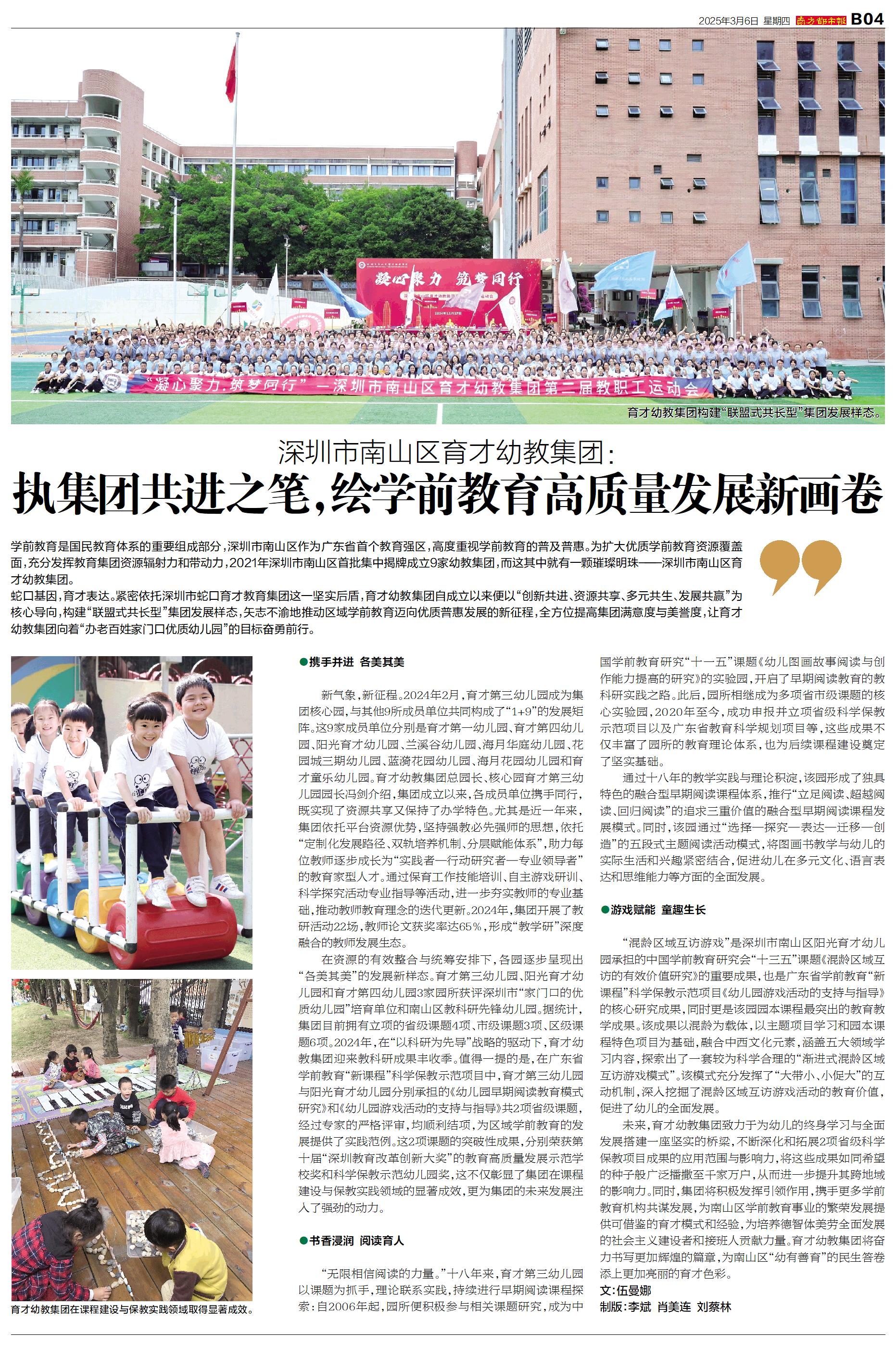 学前教育是国民教育体系的重要组成部分,深圳市南山区作为广东省首个教育强区,高度重视学前教育的普及普惠。为扩大优质学前教育资源覆盖面,充分发挥教育集团资源辐射力和带动力,2021年深圳市南山区首批集