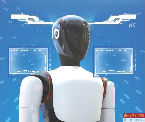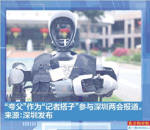 深圳龙华高科技企业乐聚研发生产的“夸父”机器人作为“记者搭子”与媒体记者一起,参与今年全国两会报道