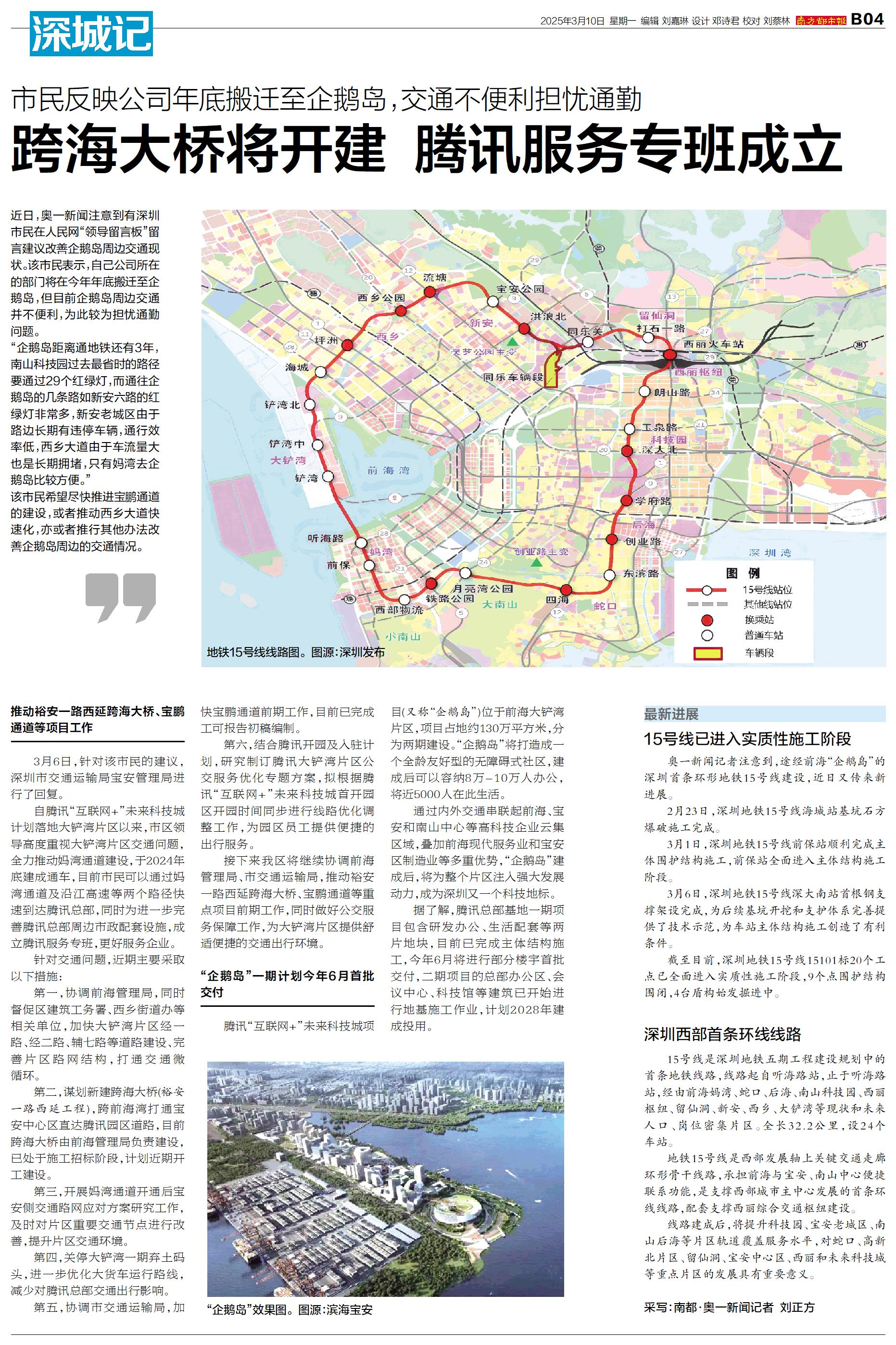奥一新闻记者注意到,途经前海“企鹅岛”的深圳首条环形地铁15号线建设,近日又传来新进展。