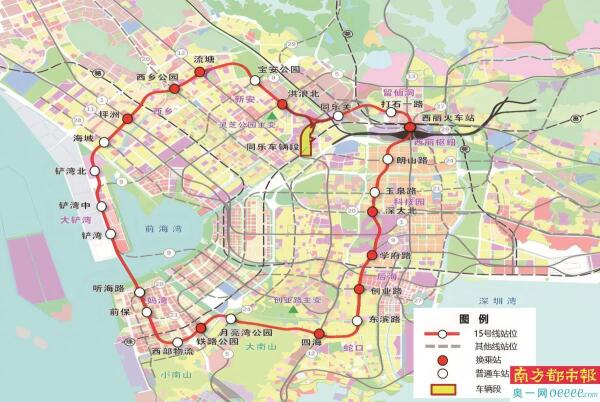 地铁15号线是西部发展轴上关键交通走廊环形骨干线路,承担前海与宝安、南山中心便捷联系功能,是支撑西部城市主中心发展的首条环线线路,配套支撑西丽综合交通枢纽建设。