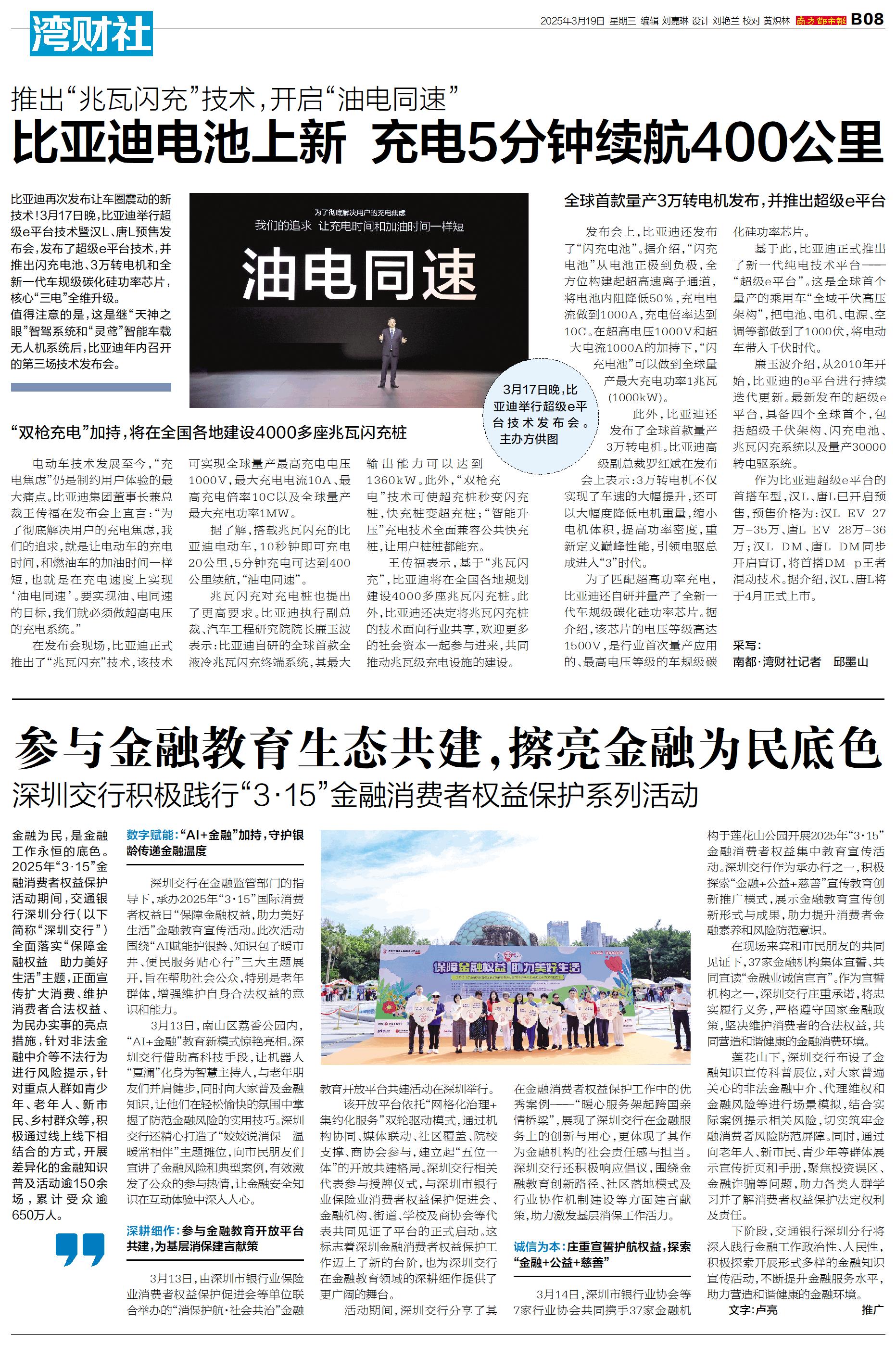 据了解,搭载兆瓦闪充的比亚迪电动车,10秒钟即可充电20公里,5分钟充电可达到400公里续航,“油电同速”。
