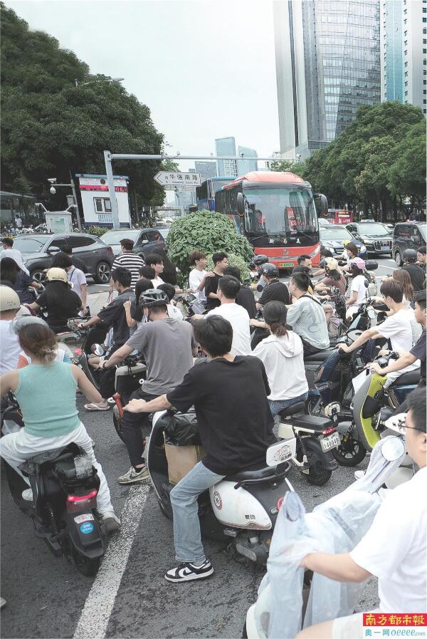 深南路华强路步行街路口,晚高峰时段挤满了过街的电动自行车。 南都记者 赵炎雄 摄(资料图)