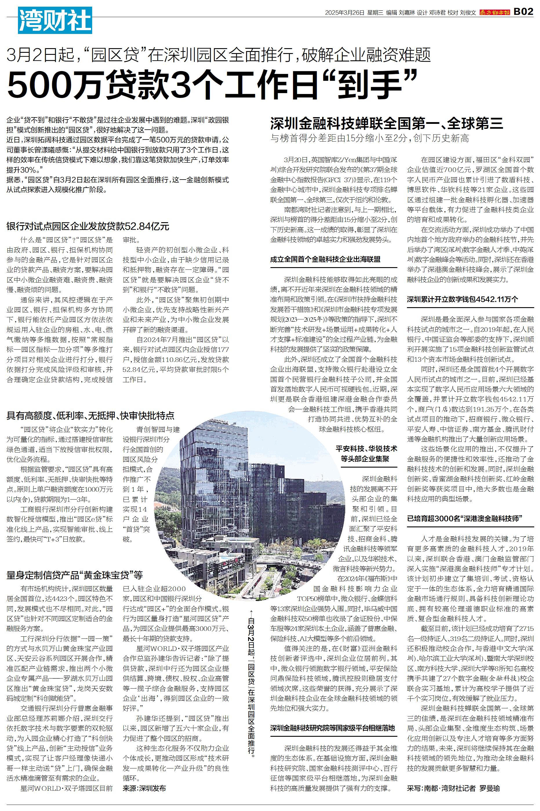 3月20日,英国智库Z/Yen集团与中国(深圳)综合开发研究院联合发布的《第37期全球金融中心指数报告(GFCI 37)》显示,在119个金融中心城市中,深圳金融科技专项排名蝉联全国第一、全球第三