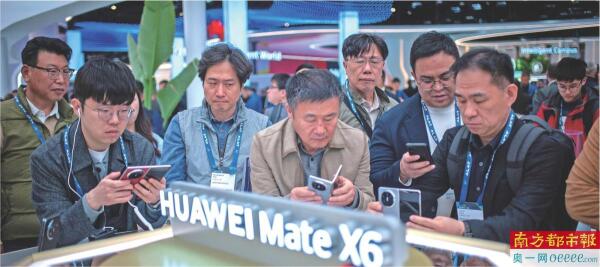 当地时间3月3日,世界移动通信大会(MWC 2025)在西班牙巴塞罗那开幕。华为携新品亮相。 IC供图