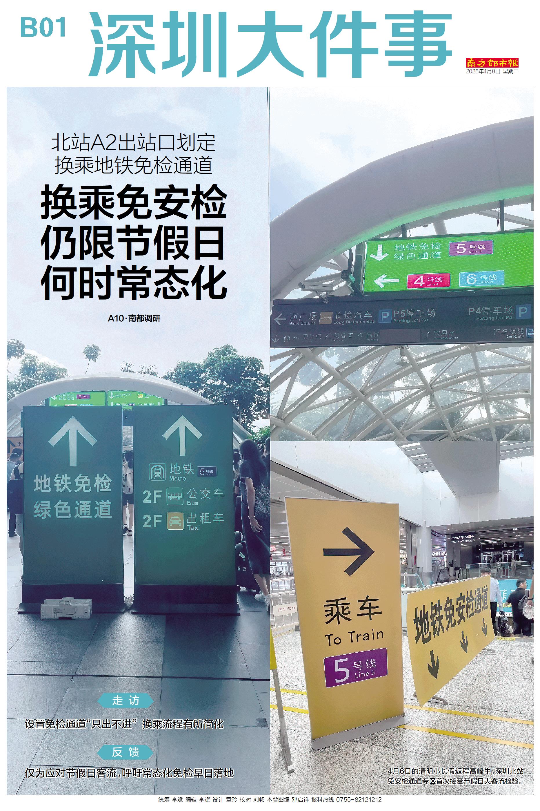 走访 设置免检通道“只出不进” 换乘流程有所简化 反馈 仅为应对节假日客流,呼吁常态化免检早日落地 A10·南都调研